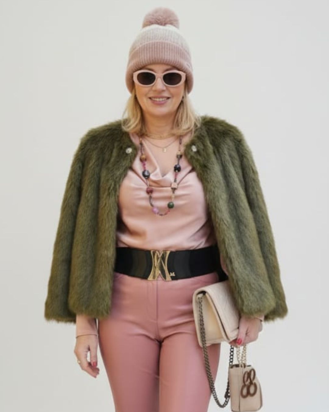 Perfecto para combinar con prendas en tonos neutros o rosados, este abrigo es ideal tanto para eventos especiales como para dar un giro chic a tus outfits diarios. Una prenda versátil y cruelty free, pensada para mujeres que buscan destacar con personalidad y comodidad.
