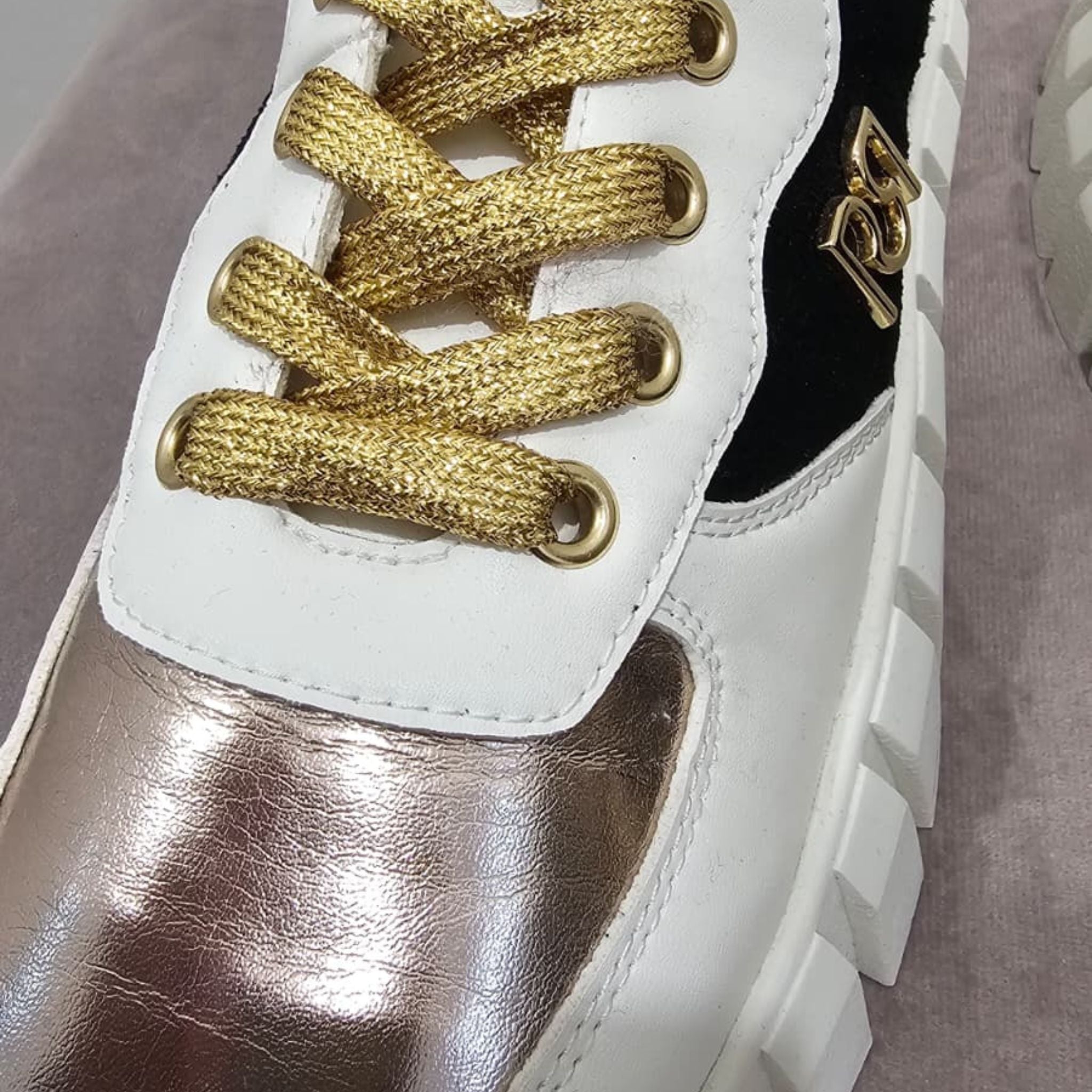 ✨ Detalles dorados: cordones y acabados con un toque glam